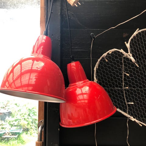 Lampen er mørke grønn.