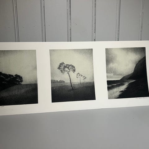 Jeg har for salg et fotografi av fjelllandskap fra Hardangervidda som er trykket på aluminium. Bildet er nylig produsert. Feste er montert på bakplaten. Det er også to avstandsknotter i de to nedre hjørnene slik at bildet skal henge plant på veggen. Det følger også med plugg og skrue for montering på vegg. Prisønske 900 kr.