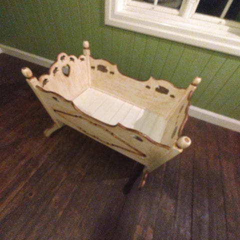 En nydelig babyvugge, originalt fra Vinje i Telemark, med rustikk design.