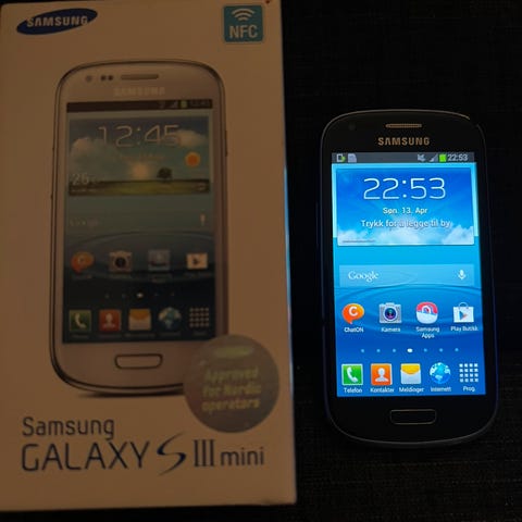 Samsung Galaxy S III modell GT-I9300 selges. Skjermen er knust men telefonen fungerer slik den fremstår nå. Batteriet mangler, men mobilen er testet med batteri fra en annen mobil. Ser at en kan kjøpe batteri til 169 kr.