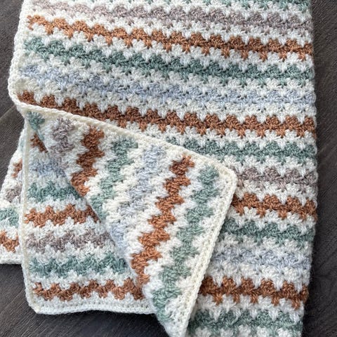 Hjemmeheklet babyteppe med små hjerter 💛🧡🤍