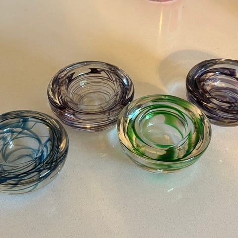 Påskekrukken er 12 cm i diameter ved åpningen og 17 cm høy. Den er fra Nille og har en bitteliten hvit flekk ved kanten. Perfekt til påskegodteri og snop.