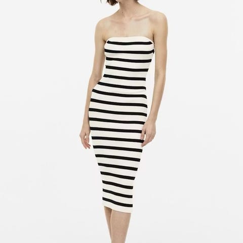 Myk og god kjole, stripete, 3/4 arm, 95% bomull 5% elastan, Meadows & Byrne. Kjempefin hverdagskjole!