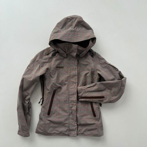 Bergans Folgefonna Lady allværsjakke str. S i fargen mørk brun i smårutete mønster.