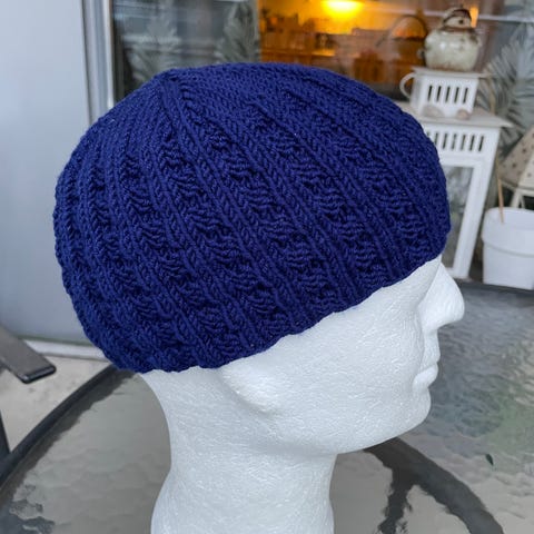 Ny håndstrikket kort lue - Str. S/M - Blåpetrol - Tynn merinoull