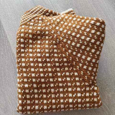 Heime strikka Islender i rosa og kvit. Aldri brukt. Kjøper betaler frakt.