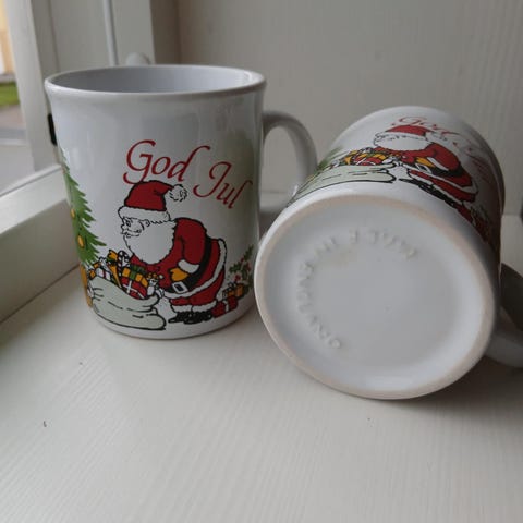 Kaffekrus med julemotiv selges samlet eller enkeltvis.