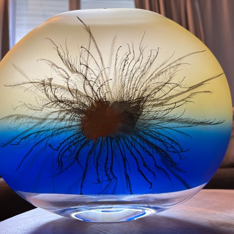 Sklo Union kunst glass vase av Rudolf Jurnikl til salgs. Pris 300kr Kan sende mot forskuddsbetaling inn på konto eller overføring via Vipps . Kjøper betaler frakt.