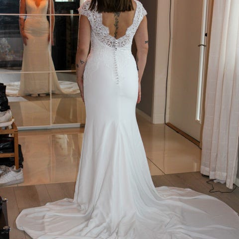 Jeg selger drømmekjolen min, som jeg kjøpte ny hos Brudehuset i Bergen.