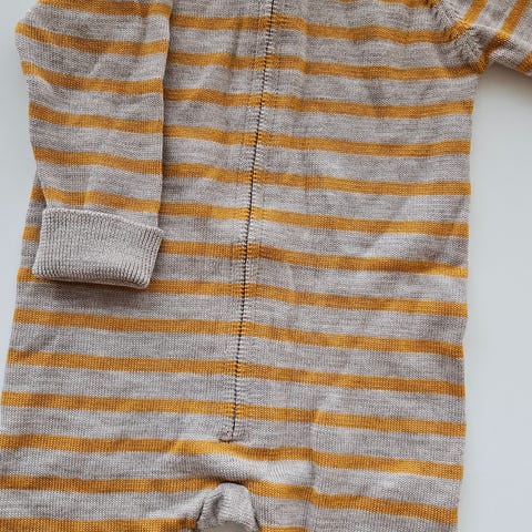 Supermyk og god ulldress fra Mini A Ture. Med knapper i skrittet for enkel av- og påkledning. Størrelse 74 / 9 måneder.
