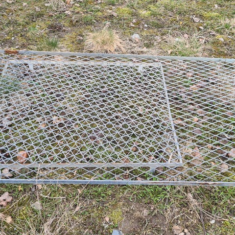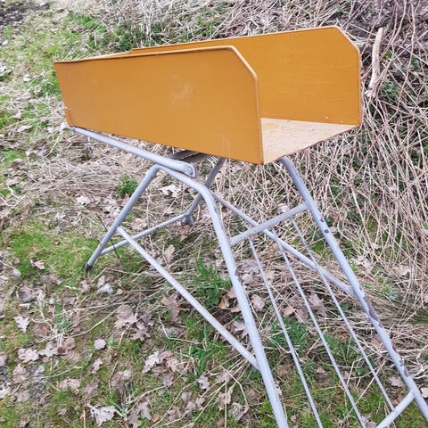 Gammelt sekke stativ, søppelstativ.