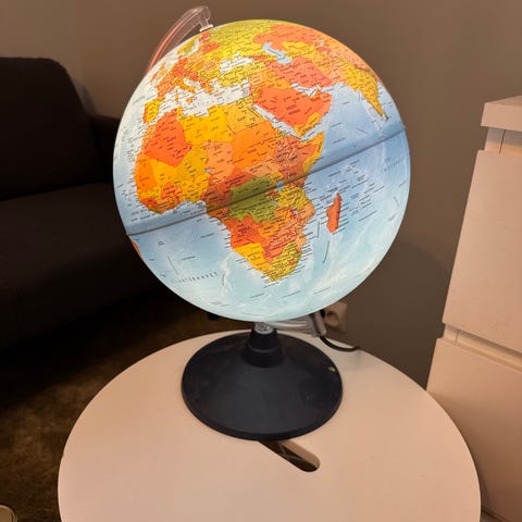 Globus tidsriktig uten Israel og mange andre land fra svunnen tid.