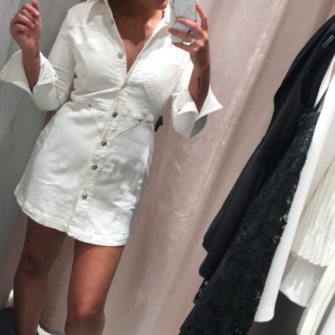 Drøm av en kjole. Tungt stoff faller fint. Belte knyttes etter ønske. Fine draperinger i stoff på skuldrene.