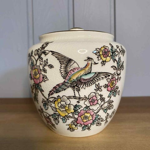 Flott porselen Kaiser Lampe med blømster motiv , gull .