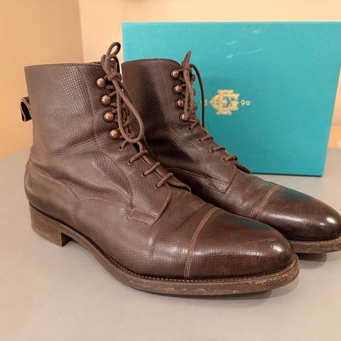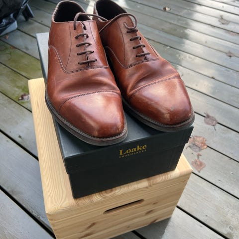 Brukt i beskjeden utstrekning på kontoret i rotasjon med andre sko, Framstår som lite og pent brukt (innendørs kontormiljø med parkett-, flis- og teppegolv.