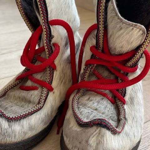 Fint mønstret. Pent brukt og veldig fine i pelsen. Ikke noen synlige slitasjemerker.