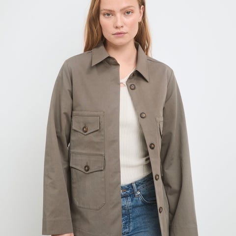 Overshirt/jakke fra Samsøe. Pent brukt. Str S men stor passform. Farge: brown rice mel (beige/grå).