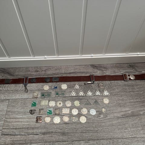 Selges samlet - speiderbelte fra 1960-tallet samt rundt merke fra Kretsleir 1968 og nålemerke KFUK. Skinnbelte for jentespeider er pent brukt og har flotte siseleringer hele veien rundt samt fin beltespenne. Merket er 27mm i diameter, nålemerket måler 2cm på hver side. Se alle bilder for nærmere detaljer.