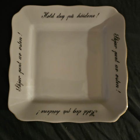 Vintage ostebrett i porselen med gullkant og ostehøvel – modell 9057