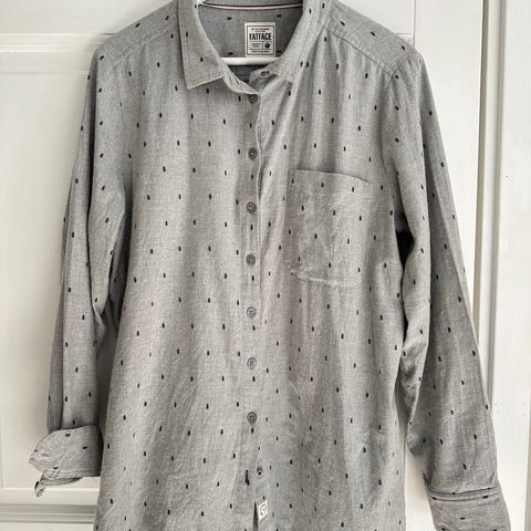 Deilig oversized skjorte i tykk, god flanellskvalitet. StrXl. Pent brukt. Kr100,- evt pluss porto.