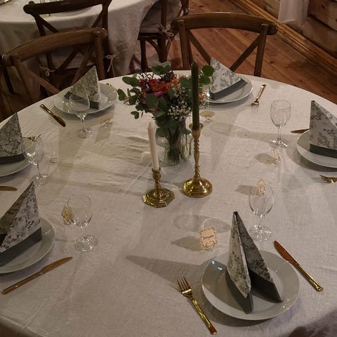 Duk, pynt, tøyservietter til små selskap leies ut