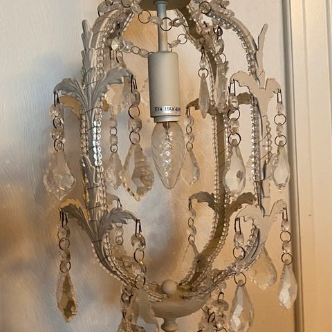 Pen klassisk lysekrone fra Iris Cristal . 2 etasjer 8 + 4 armer. Total høyde 100 cm og 70 cm i bredden .