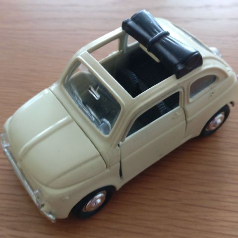 Nydlig liten model av ein sein Fiat 500 , ser ut som ein 500F, frå Pauls Model Art, i skala 1/64. Denna vart handla av meg i San Marino i 1997.