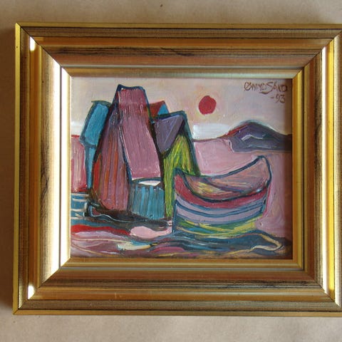 Stort litografi av Theo Tobiasse. Symponie pour une pomme. Utvendig mål ramme 83,5 x 103 cm.