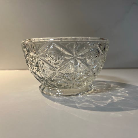 Elegant glasskål med vakker slipet stjernedekor i bunnen og praktisk inndeling i tre rom. Frostet på undersiden.