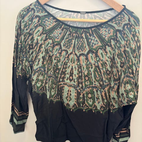 Str. 34, men romslig størrelse som kan passe flere størrelser. (Modellen på bildet er normalt str. 36/S)