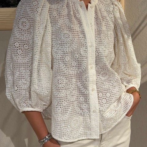 Pen og sommerlig bluse/tunika fra det danske merket «Gustav». Fine detaljer i front og rundt ermer som er håndlaget.
