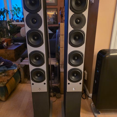 Selger et par cav høytallere med sub. Høytallerne fungerer fint. Subwooferen har aldri vært i bruk. Må hentes.