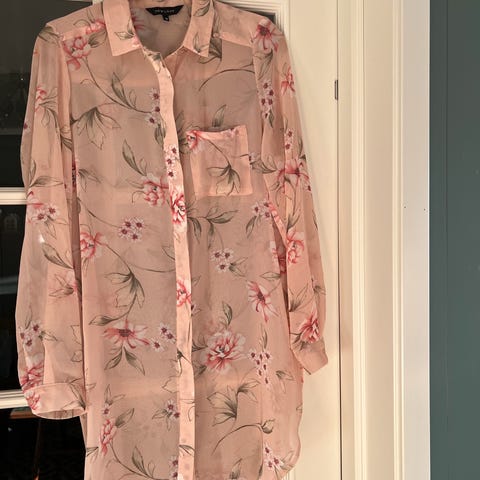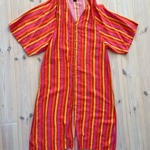 Hvit og blå stripet skjorte kjole med broderinger. Passer en medium også.