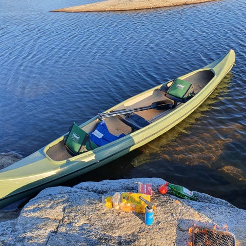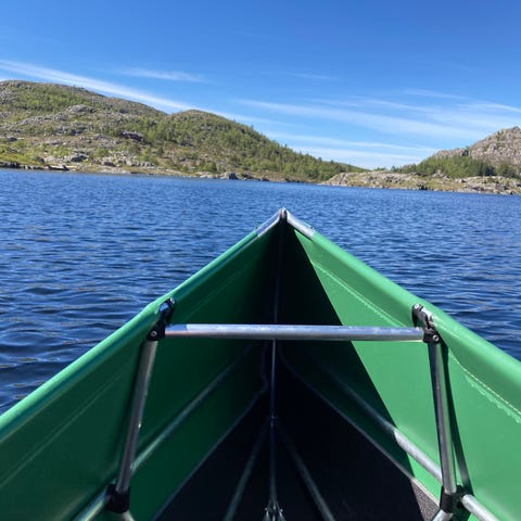 Kano til leie. 500 kr pr uke. Prisen er altså 500 om du leier 1 dag eller 7 dager. Det er plass til 3 (4) i kanoen. Årer følger med.