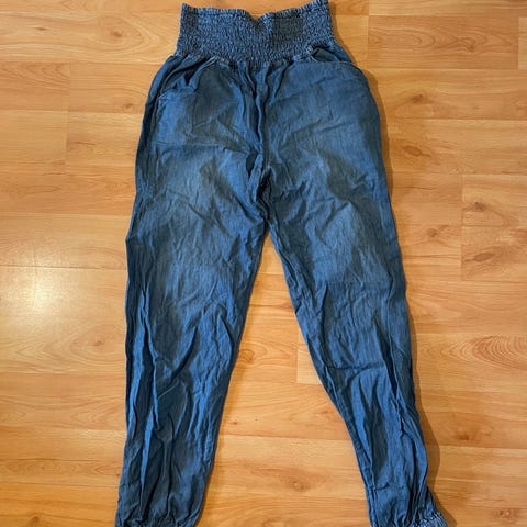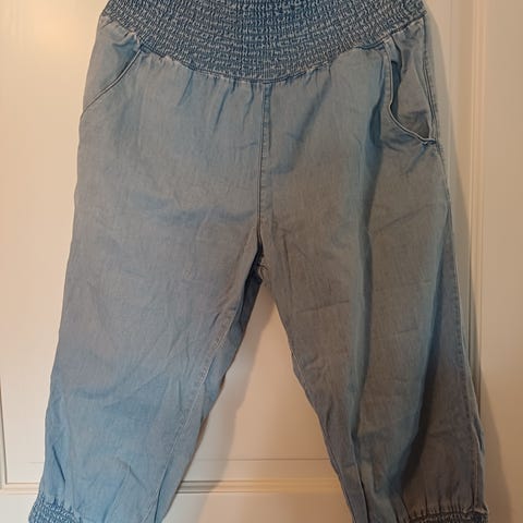Pene og lette bukser, med pynte detaljer, strikk i livet og nede, lengde 80cm