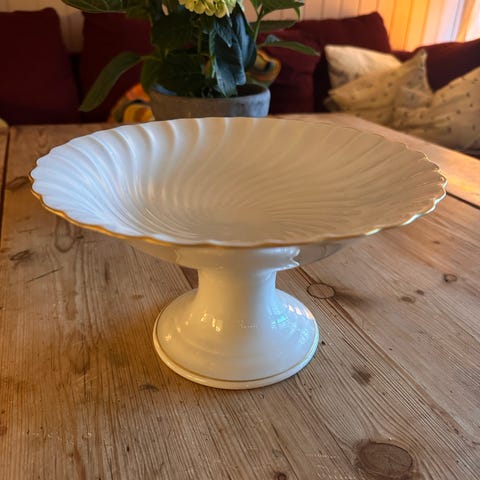 Høyde på fatet er 18,5 cm og diameter oppe er 22,5 cm. Skålen er 15 cm I diameter og 5 cm høy. Samlet kr. 50,-