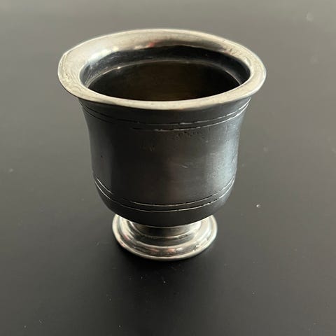 Kopi av brennevinsbeger fra Bergen fra ca. 1750. Høyde 5 cm. I gavepakning.