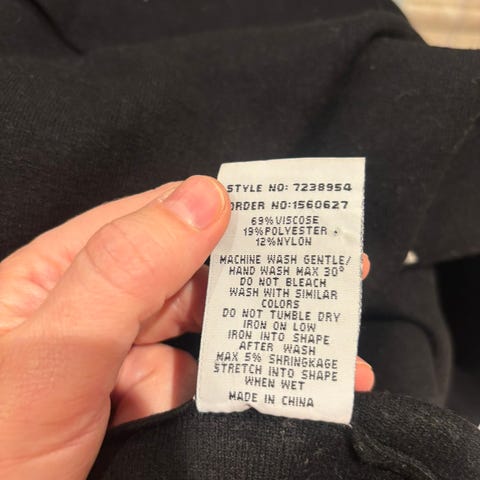 Ikke brukt. Blei liggende i skapet. Den har lite stretch. Ganske fast stoff. Baggy stil med rette vide ben. Ganske romslig i Str.