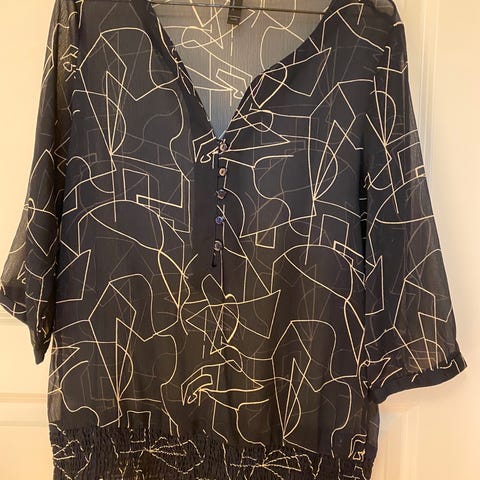 Pen bluse i behagelig stoff, bryst 50x2=100cm,Lengde 65cm, splitter på sidene