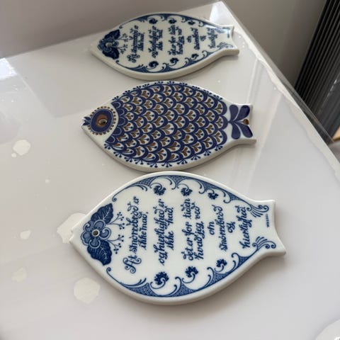 Flott fjøl formet som fisk fra Porsgrund Porselen.