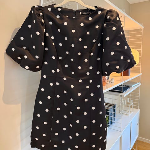 Halvlang kjole med prikker fra bikbok. Knapper fremme. Ubrukt med lapp på. Str M. Røyk- og dyrefritt hjem.