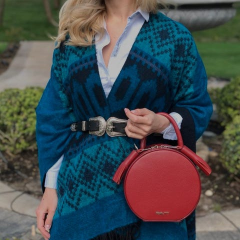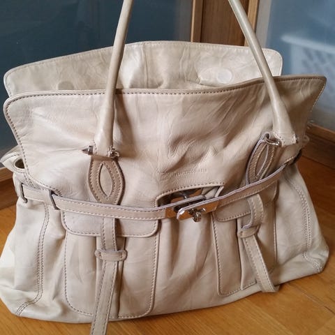 Helt ny blå/lilla veske. Aldri brukt, med prislapp på. I ekte skinn, kommer med totebag for oppbevaring. Kommer med to reimer, en kort og en lengre for over kroppen.