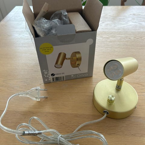 Veldig stilig vegglampe i rå messing selges.