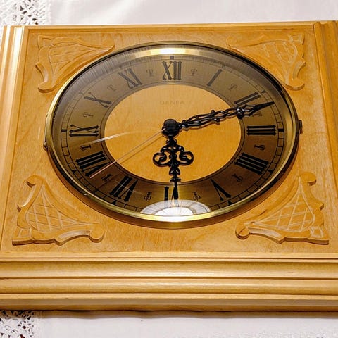 Crosa klokke. Denne elegante klokken har en detaljert statue av en kvinne med et barn. Klokken har romertall og en klassisk stil som passer godt i stue eller på peishyllen. Ideell for de som ønsker en dekorativ klokke med et kunstnerisk preg.