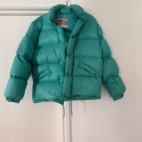Mint grønn vintage dunjakke i god stand. Ikke flekker eller hull. Meget varm.
