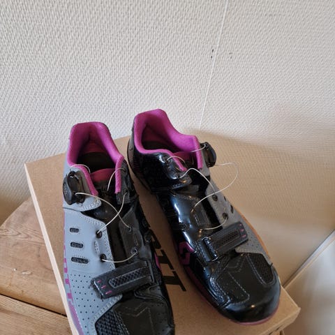 Fine sykkelsko selges da de er litt for små. Str. 37. Fester til pedal følger ikke med,men kan lett anskaffes til lav pris.
