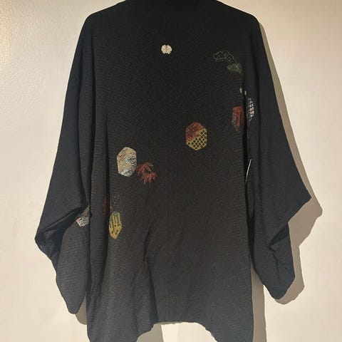 Vintage japansk bomullskimono i stripet mønster av mørkerødt og blått