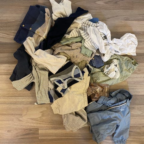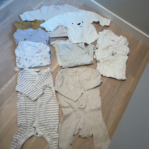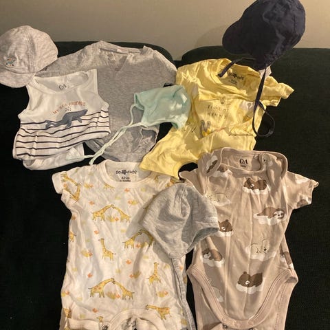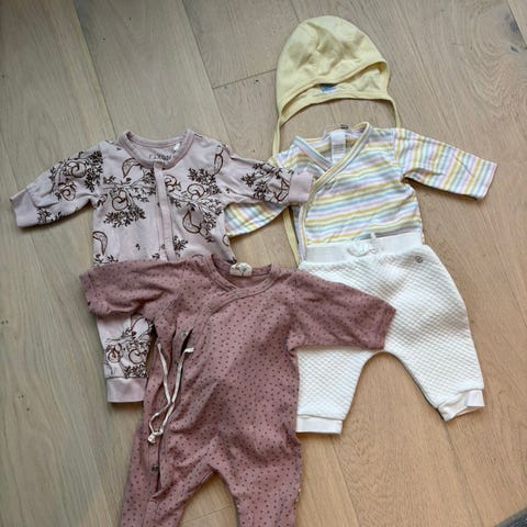 Liten pakke med klær, luer, nytt babypledd, ny koseklut og et lite ubrukt skilt til prinsessen.