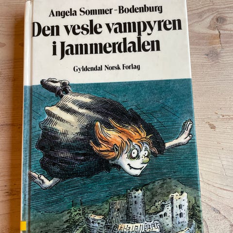 Her har du sjansen til å kjøpe en nostalgisk klassiker - den tredje boka i serien om den vesle vampyren. Dette er førsteutgaven utgitt på Gyldendal i 1986, oversatt av Tormod Haugen og med omslag og illustrasjoner av Amelie Glienke.