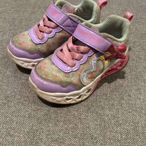 🦄 Skechers sko str 25. Noe slitasje og misfarging foran. Modelleire under skoene. De er brukt som innesko i barnehagen. Fine sko. Lett å ta av og på og lett i vekt 🤗 kan vaskes i maskin. Nypris 849 kr. Kan sendes mot porto 🦄